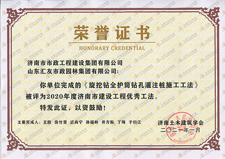 2020年度济南市建设BG大游优异工法《旋挖钻全护筒钻孔灌注桩施工工法》